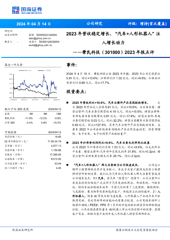 国海证券:肇民科技(301000)-2023年报点评:2023年营收稳定增长,“汽车+人形机器人”注入增长动力.pdf
