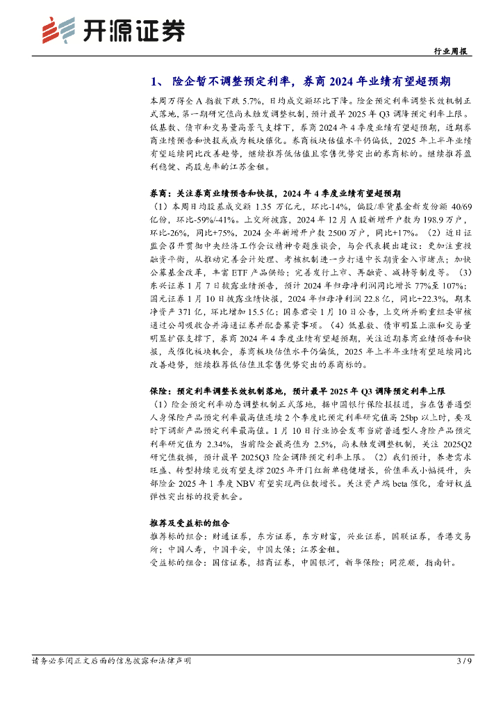 开源证券:非银金融行业周报:险企暂不调整预定利率,券商2024年业绩或超预期.pdf