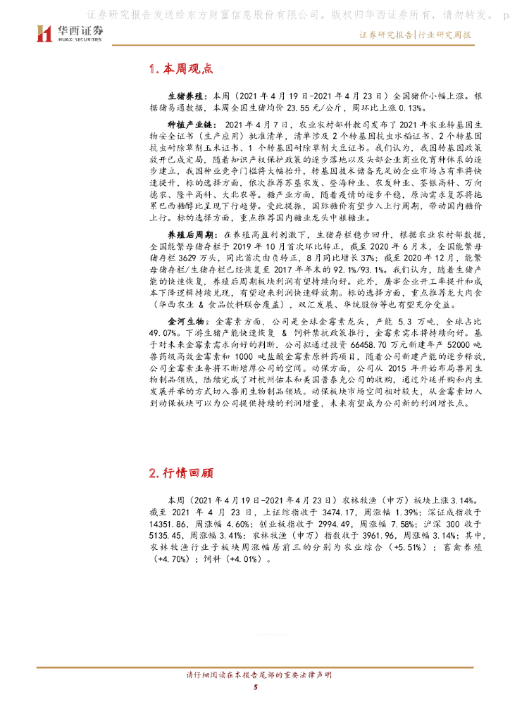 华西证券:农林牧渔行业周报第16期:养殖后周期高景气持续,继续推荐金河生物.pdf