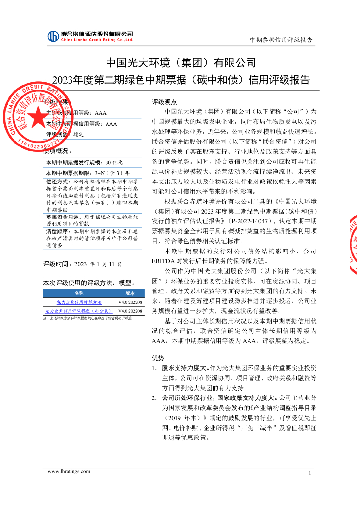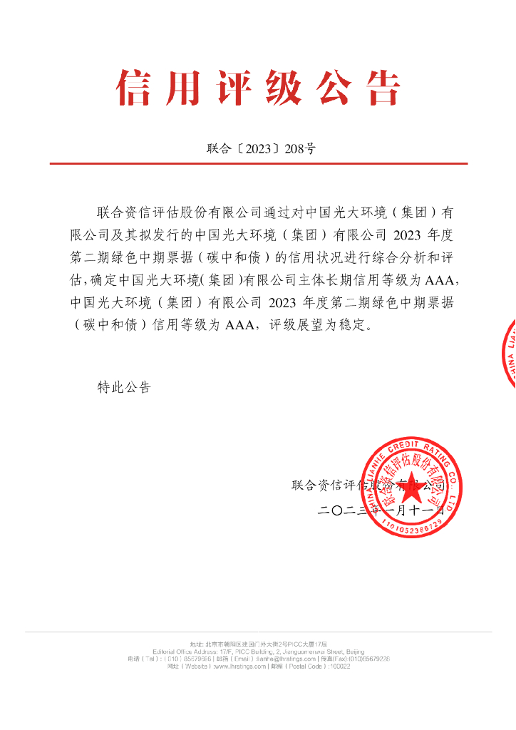 联合资信:中国光大环境(集团)有限公司2023年度第二期绿色中期票据(碳中和债)信用评级报告.pdf