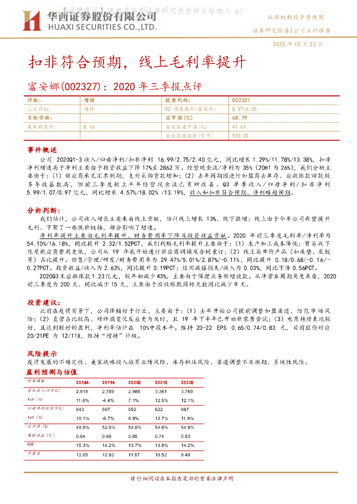 华西证券:富安娜(002327)-扣非符合预期,线上毛利率提升.pdf