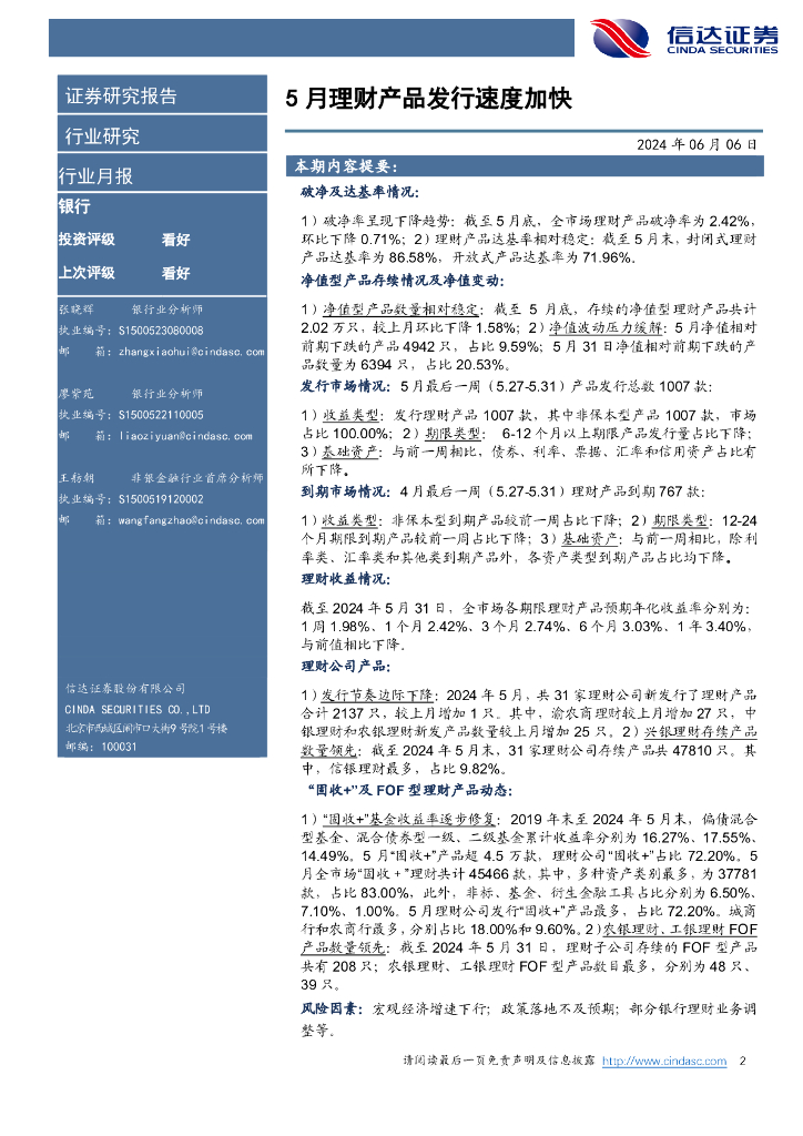 信达证券:银行行业月报:5月理财产品发行速度加快.pdf