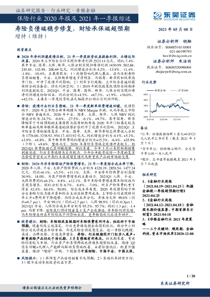 东吴证券:保险行业2020年报及2021年一季报综述:寿险负债端稳步修复,财险承保端超预期.pdf