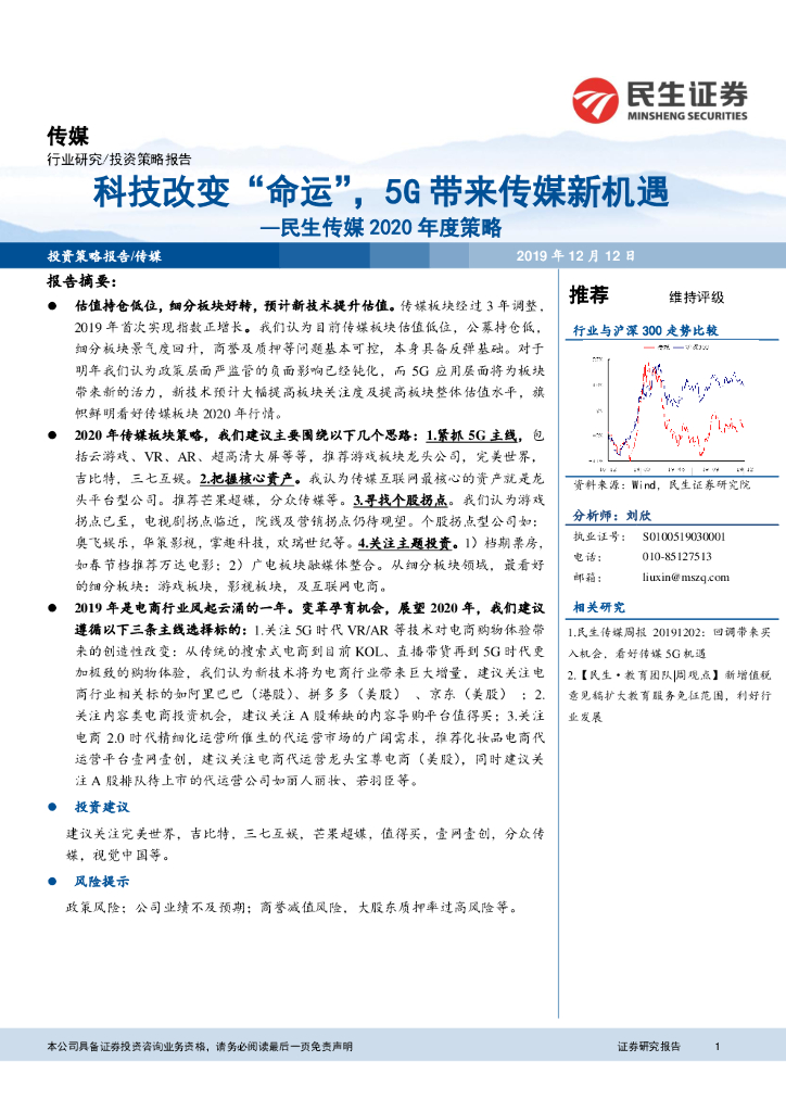 民生证券:民生传媒2020年度策略:科技改变“命运”,5G带来传媒新机遇.pdf