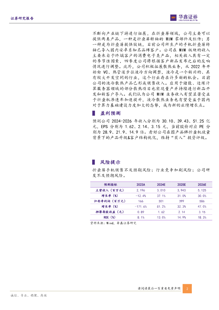华鑫证券:精研科技(300709)-公司事件点评报告:业绩短期承压,折叠屏铰链MIM与散热业务推动公司发展长期向好.pdf
