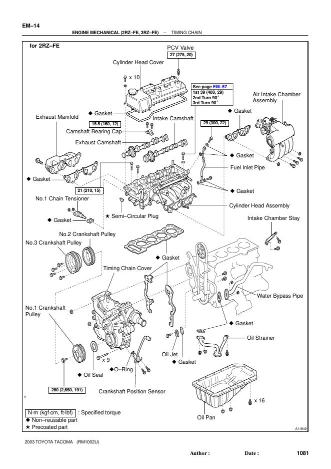 丰田 Tacoma 2003 款发动机机械(2RZ-FE,3RZ-FE)正时链条组件拆卸和安装.pdf