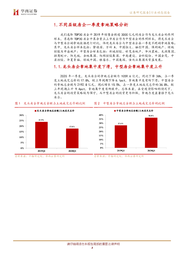 华西证券:TOP30房企一季度拿地策略分析:拿地策略显著分化,龙头房企趋于保守.pdf