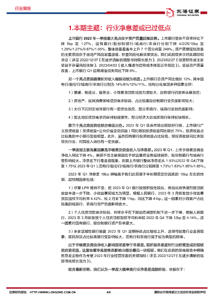 东海证券:银行业主题周报:行业净息差或已过低点.pdf