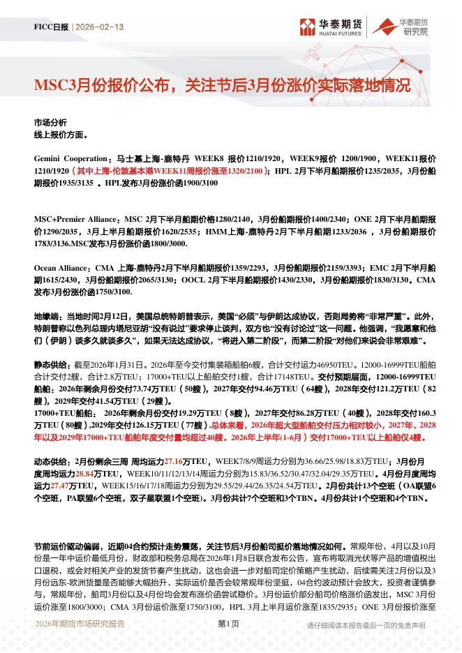 华泰期货:FICC日报:MSC3月份报价公布,关注节后3月份涨价实际落地情况-260213.pdf