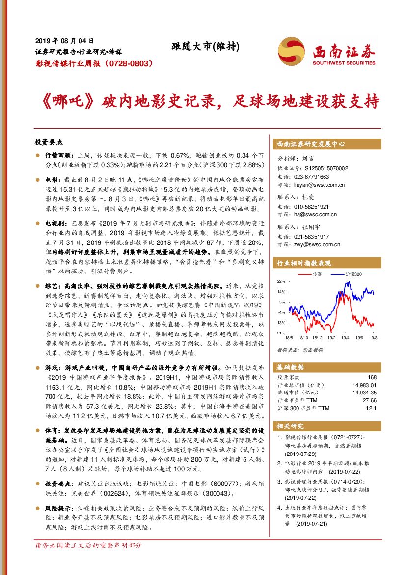 西南证券:影视传媒行业周报:《哪吒》破内地影史记录,足球场地建设获支持.pdf