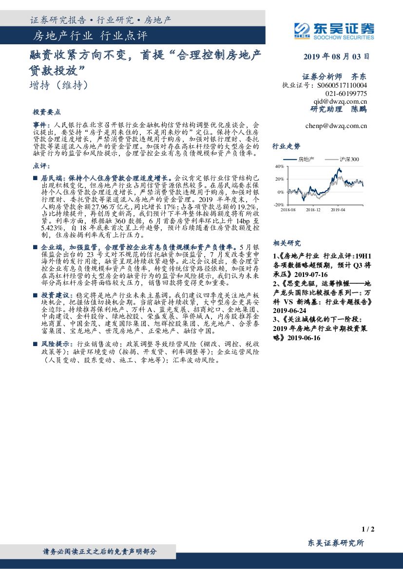 东吴证券:房地产行业点评:融资收紧方向不变,首提“合理控制房地产贷款投放”.pdf