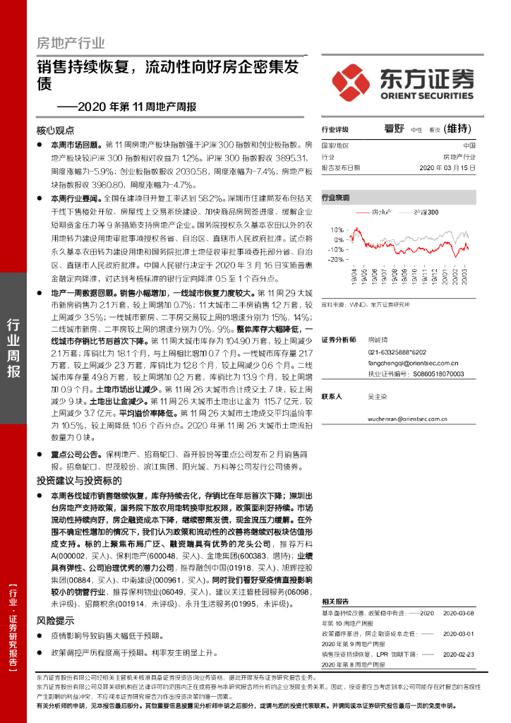 东方证券:房地产行业:2020年第11周地产周报:销售持续恢复,流动性向好房企密集发债.pdf