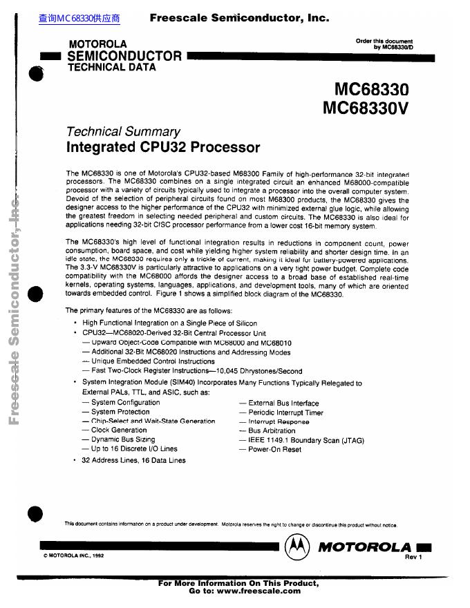 MOTOROLA MC68330/MC68330V 数据手册.pdf