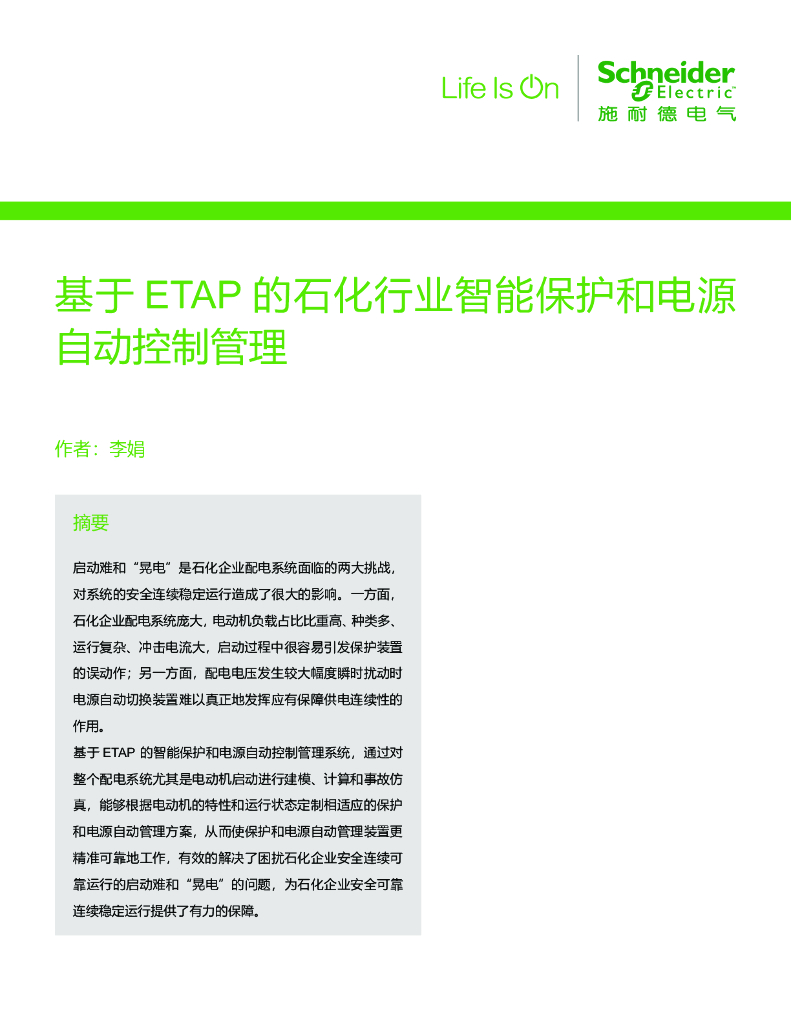 施耐德电气:化工油气行业应用白皮书——基于ETAP的石化行业智能保护和电源自动控制管理.pdf