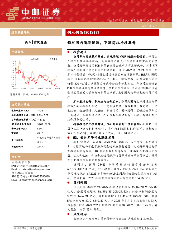 中邮证券:铜冠铜箔(301217)-领军国内高端铜箔,下游需求持续攀升.pdf