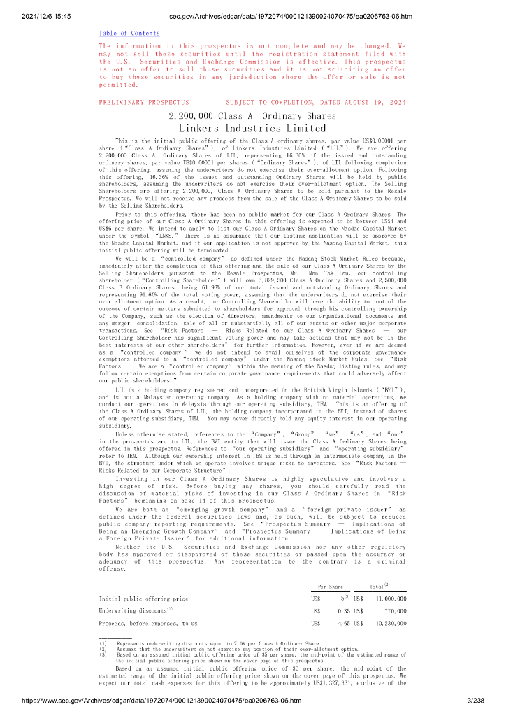 Linkers Industries Limited美股纳斯达克IPO上市招股说明书.pdf