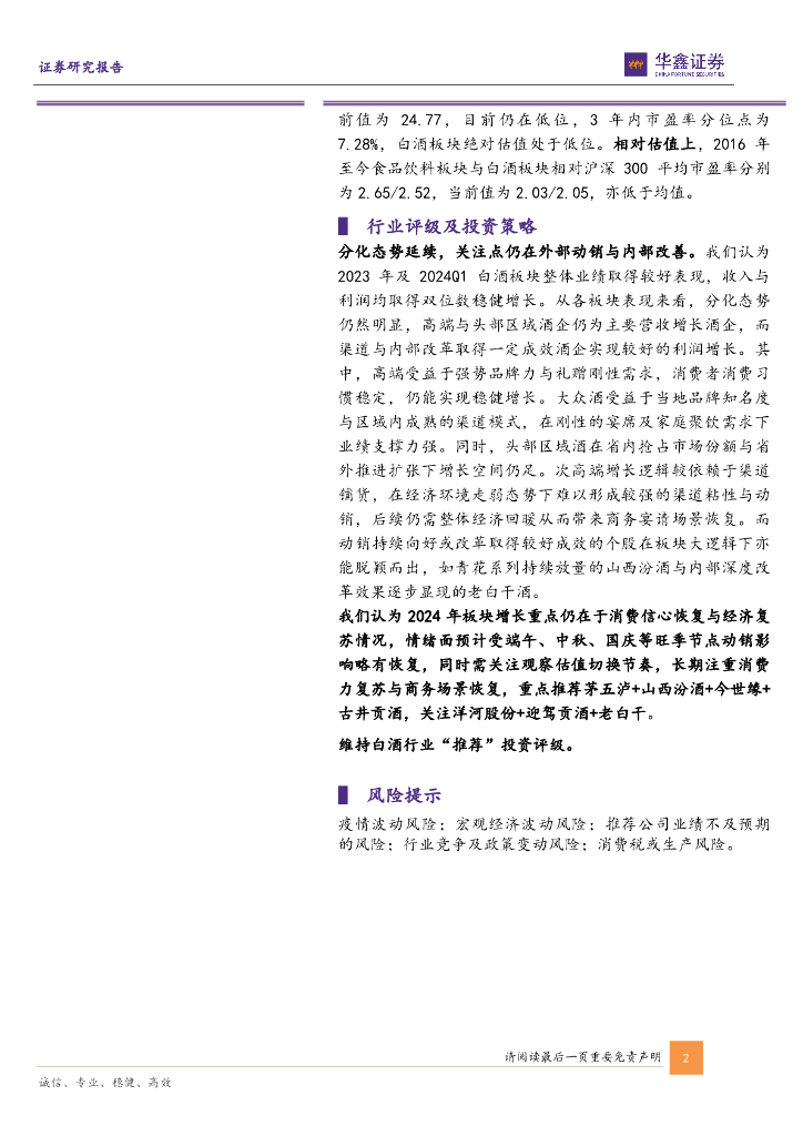 华鑫证券:白酒行业2023年年报及2024年一季报总结:分化态势延续,趋势向好确定性强.pdf
