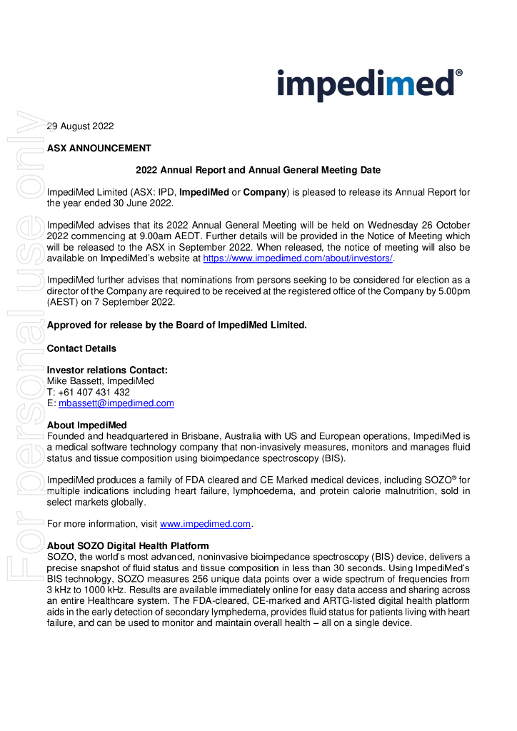 ImpediMed Limited(IPD)2022财年年度报告(英文版).pdf