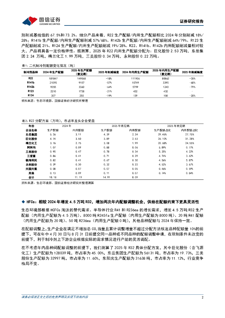国信证券:2025年制冷剂配额征求意见稿点评:制冷剂配额长期约束,看好R22及R32景气度延续.pdf