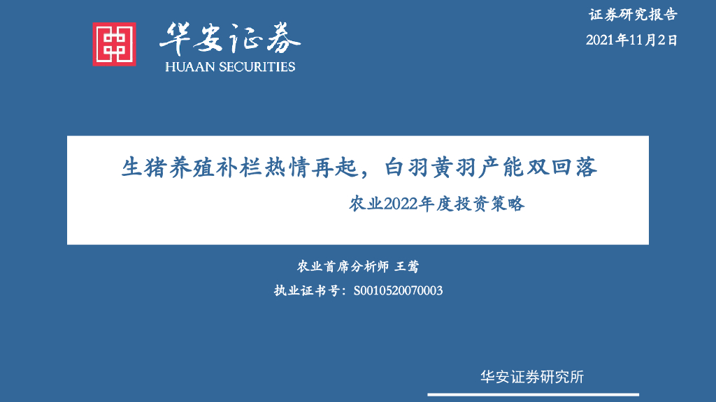 华安证券:农业2022年度投资策略:生猪养殖补栏热情再起,白羽黄羽产能双回落.pdf