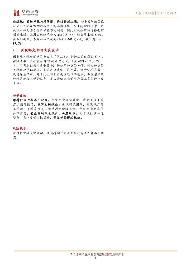 华西证券:造纸行业数据跟踪报告:浆价上涨乏力,文化纸盈利处于高位;废纸回收困难,包装纸涨价情绪浓厚.pdf