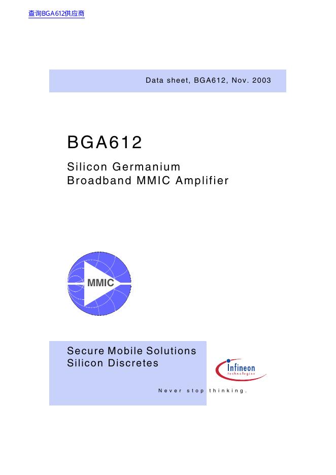 infineon BGA612 Silicon Germanium 数据手册.pdf