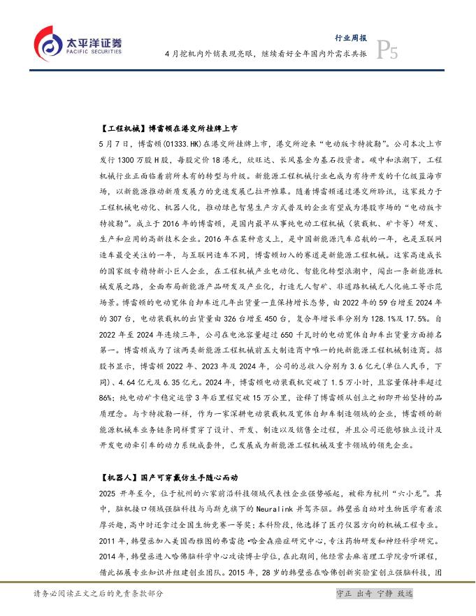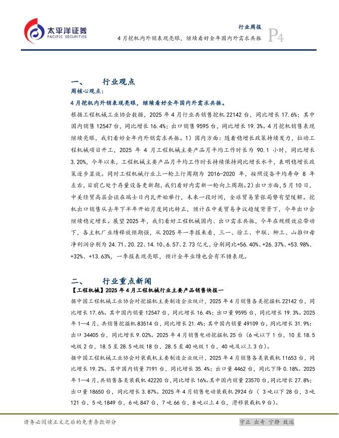 太平洋证券:机械行业周报:4月挖机内外销表现亮眼,继续看好全年国内外需求共振.pdf