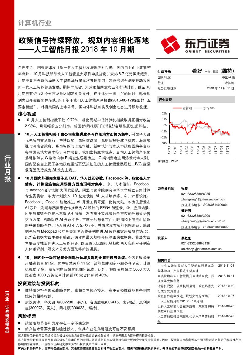 东方证券:人工智能月报2018年10月期:政策信号持续释放,规划内容细化落地.pdf