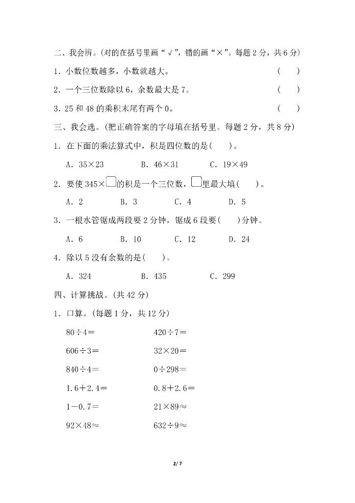 人教三(下)期末冲刺方法技能提升卷(一)计算的挑战.pdf