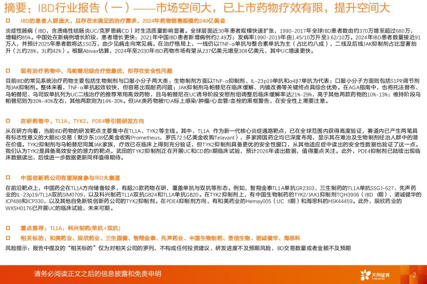 天风证券:IBD行业报告(一)——市场空间大,已上市药物疗效有限,提升空间大.pdf