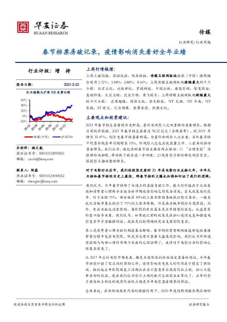 华安证券:传媒行业周报:春节档票房破记录,疫情影响消失看好全年业绩.pdf