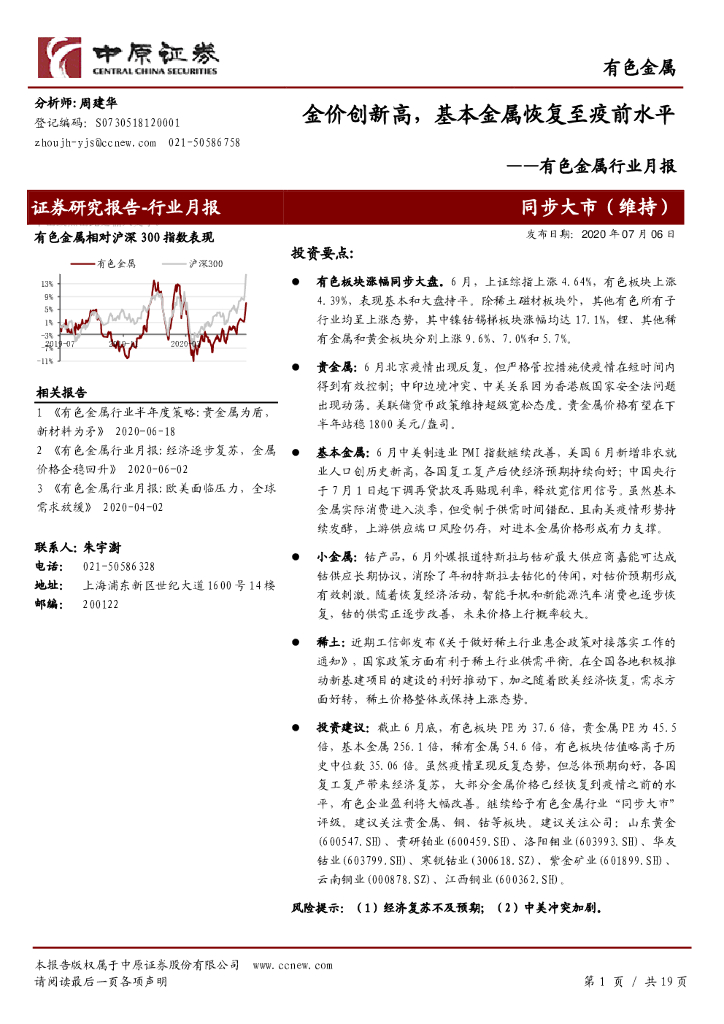 中原证券:有色金属行业月报:金价创新高,基本金属恢复至疫前水平.pdf