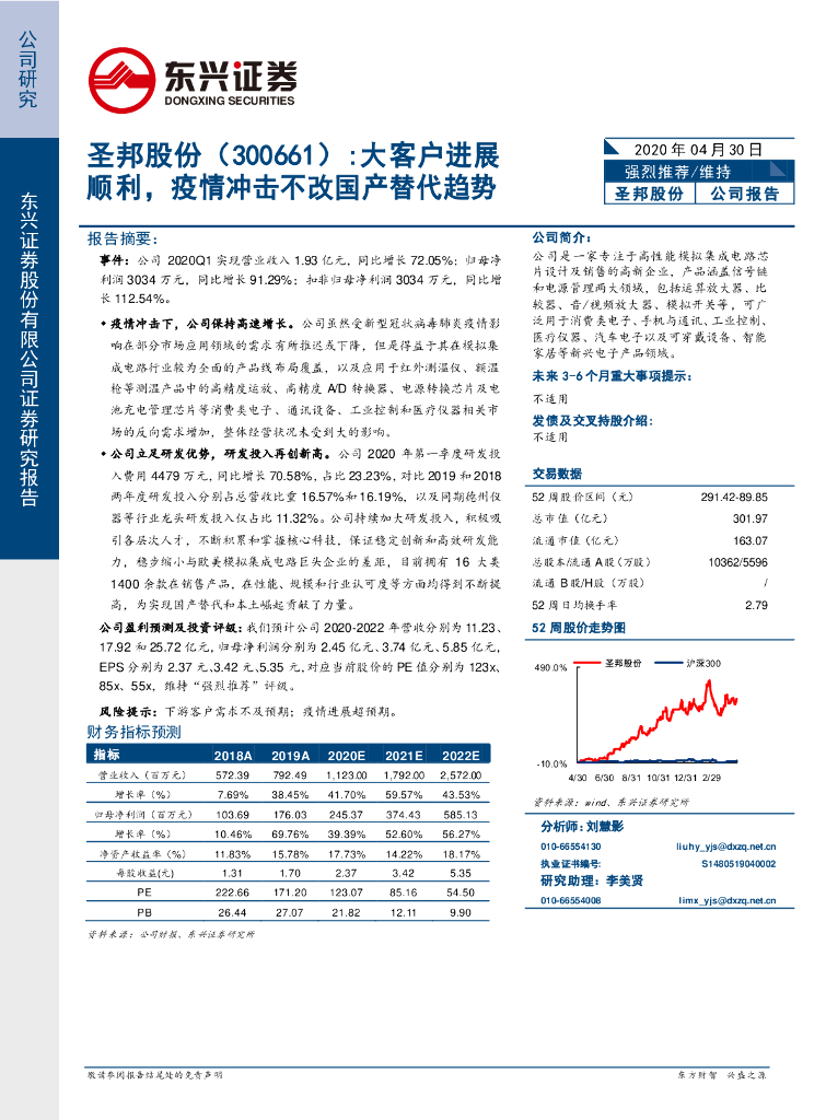 东兴证券:圣邦股份(300661)-大客户进展顺利,疫情冲击不改国产替代趋势.pdf