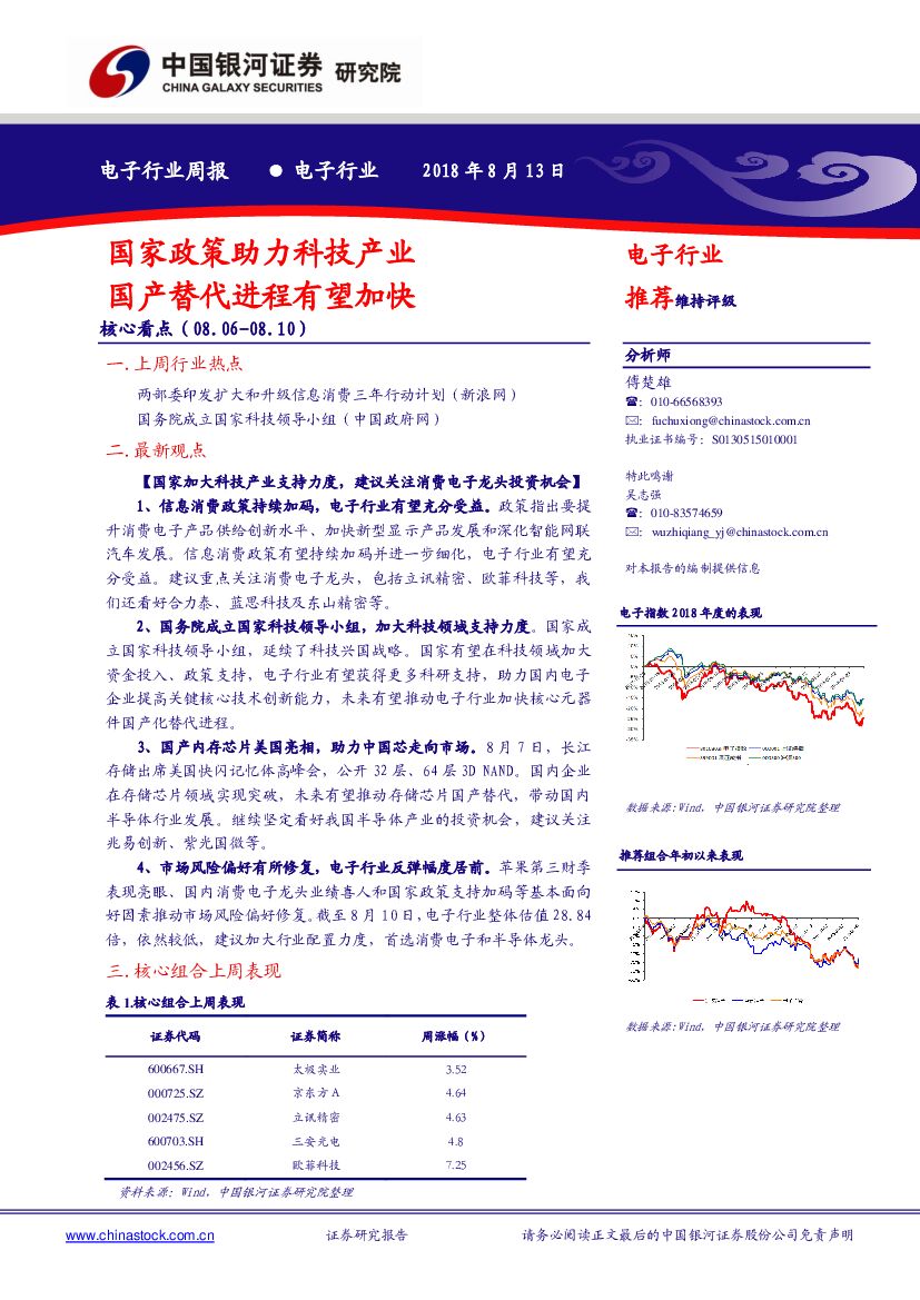 中国银河:电子行业周报:国家政策助力科技产业 国产替代进程有望加快.pdf