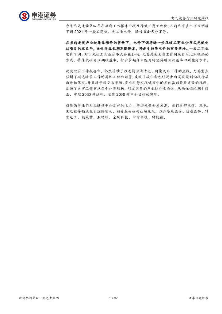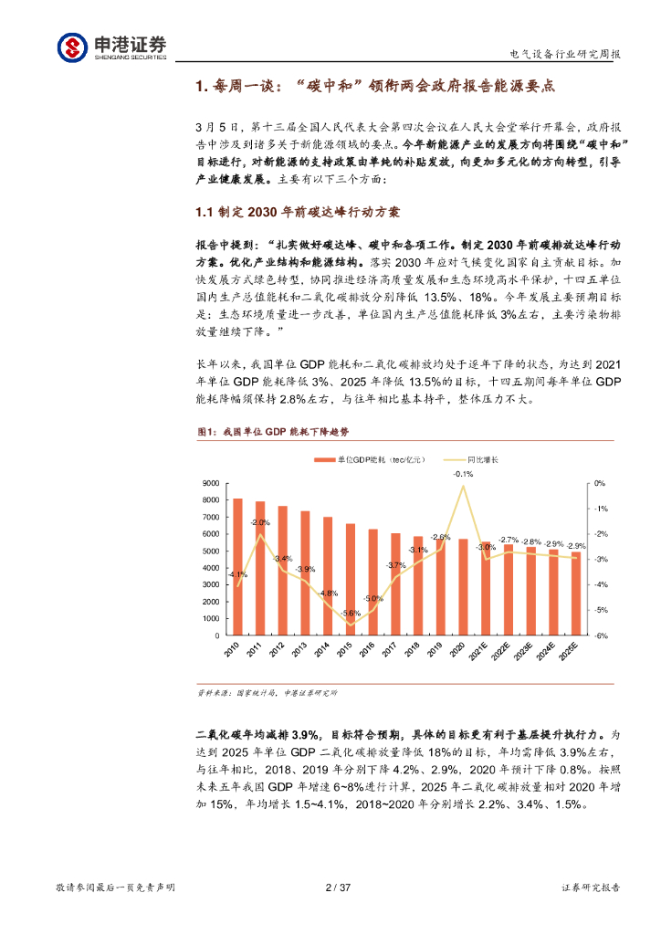申港证券:电气设备行业周报:“碳中和”领衔两会政府报告能源要点.pdf