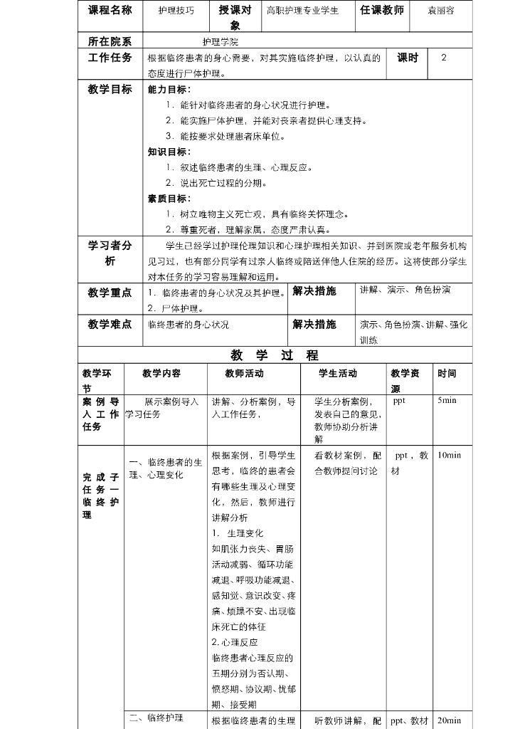 《护理技巧》电子教案-任务一 临终护理.pdf