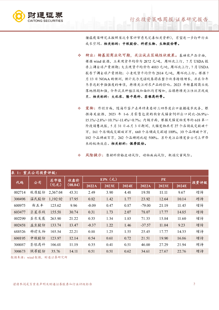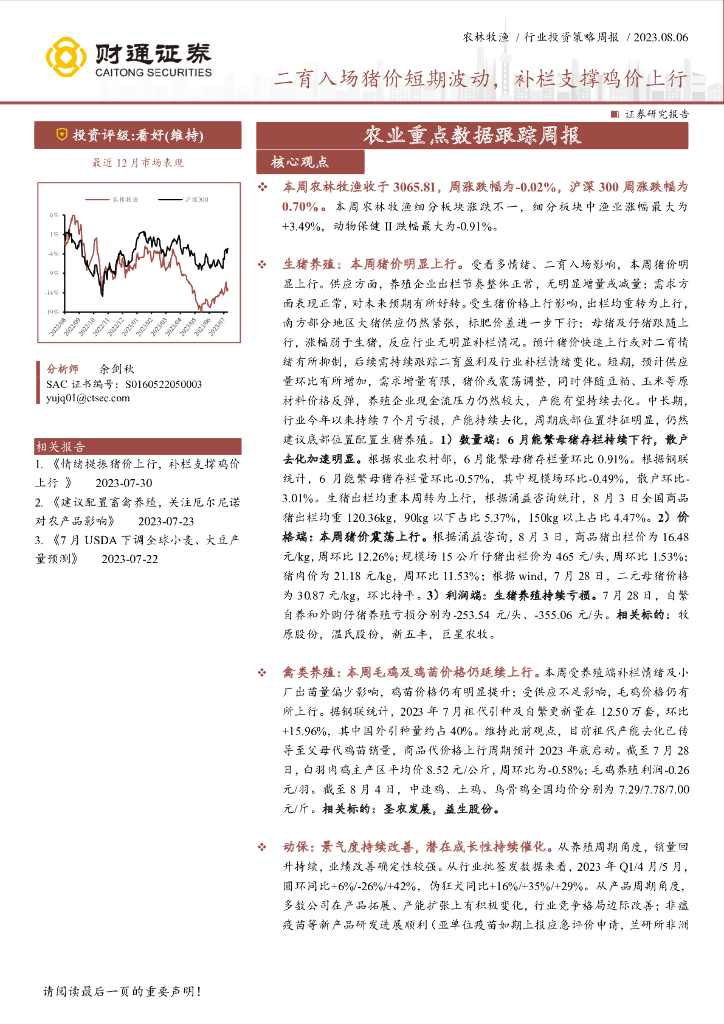 财通证券:农业重点数据跟踪周报:二育入场猪价短期波动,补栏支撑鸡价上行.pdf