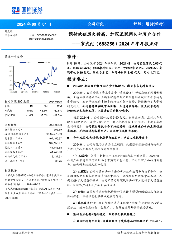 国海证券:寒武纪(688256)-2024年半年报点评:预付款创历史新高,加深互联网头部客户合作.pdf