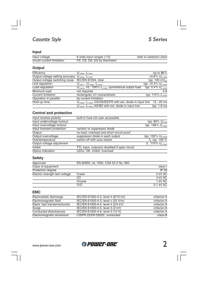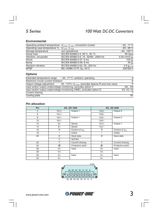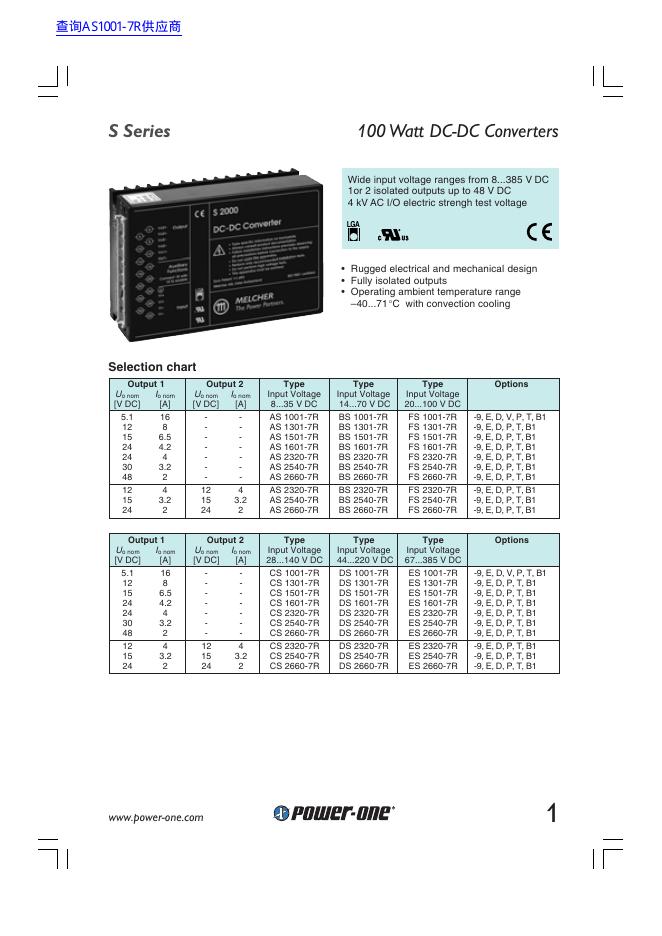 POWER ONE S Series 100 Watt DC-DC Converters 数据手册.pdf