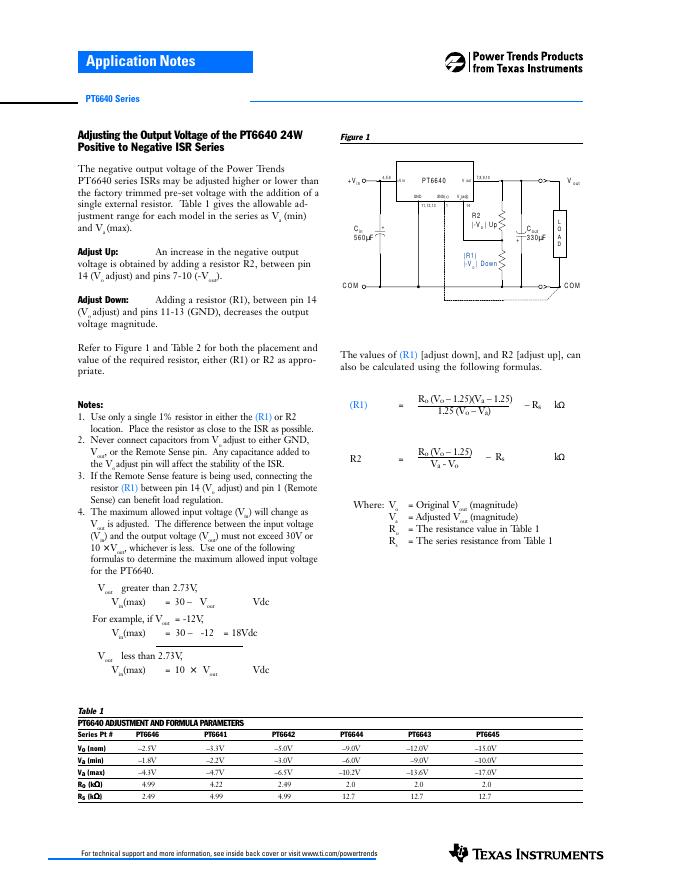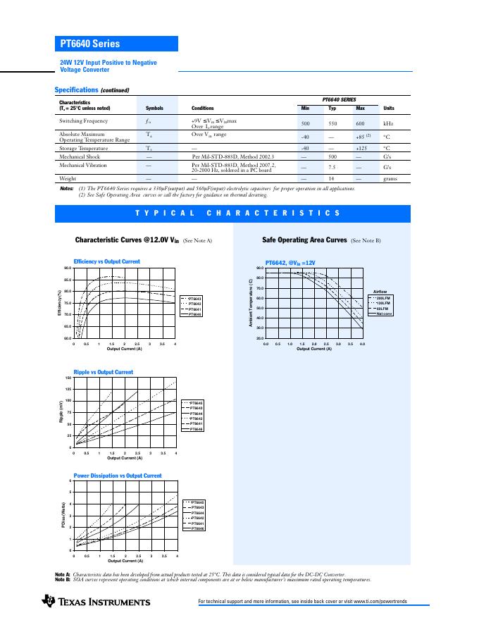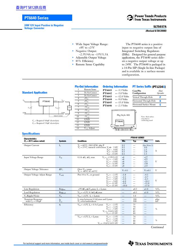 TEXAS INSTRUMENTS PT6640 Series 24W 12V Input Positive to Negative Voltage Converter 数据手册.pdf