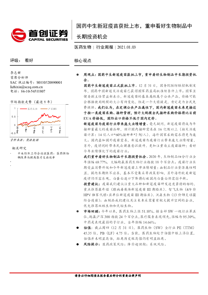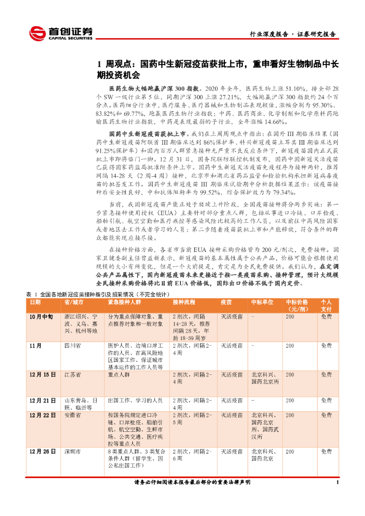 首创证券:医药生物行业周报:国药中生新冠疫苗获批上市,重申看好生物制品中长期投资机会.pdf