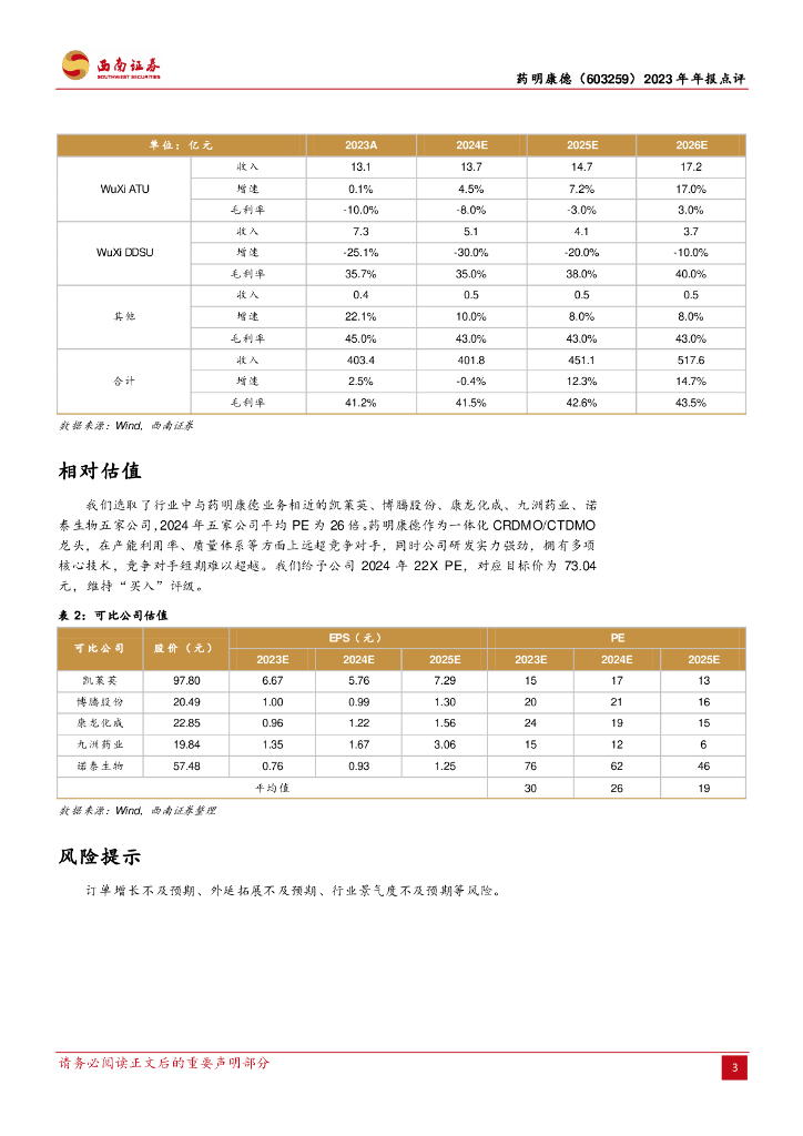西南证券:药明康德(603259)-2023年年报点评:非新冠业务平稳增长,TIDES业务持续亮眼.pdf