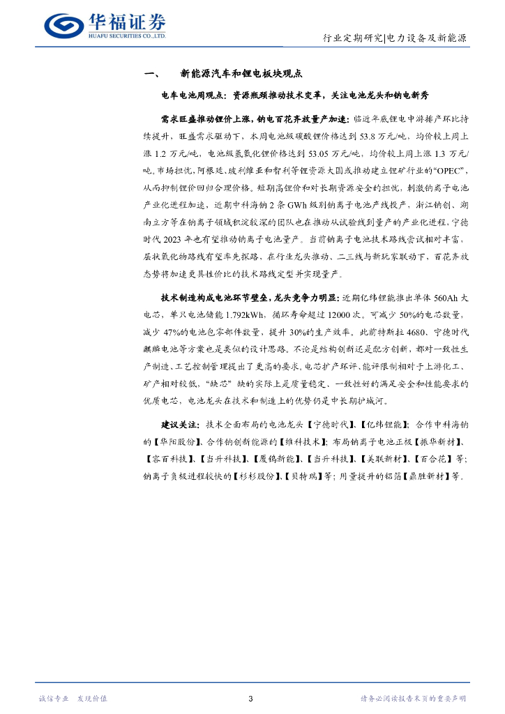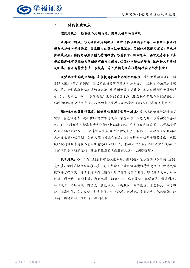 华福证券:电力设备及新能源行业周报:技术变革关注电池龙头及钠电新秀,硅料新产能投放组件供需两旺,国内大储经济性与周期共振.pdf