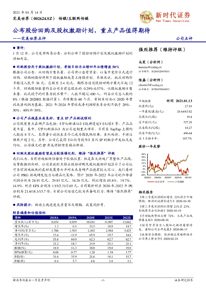 新时代证券:完美世界点评:公布股份回购及股权激励计划,重点产品值得期待.pdf