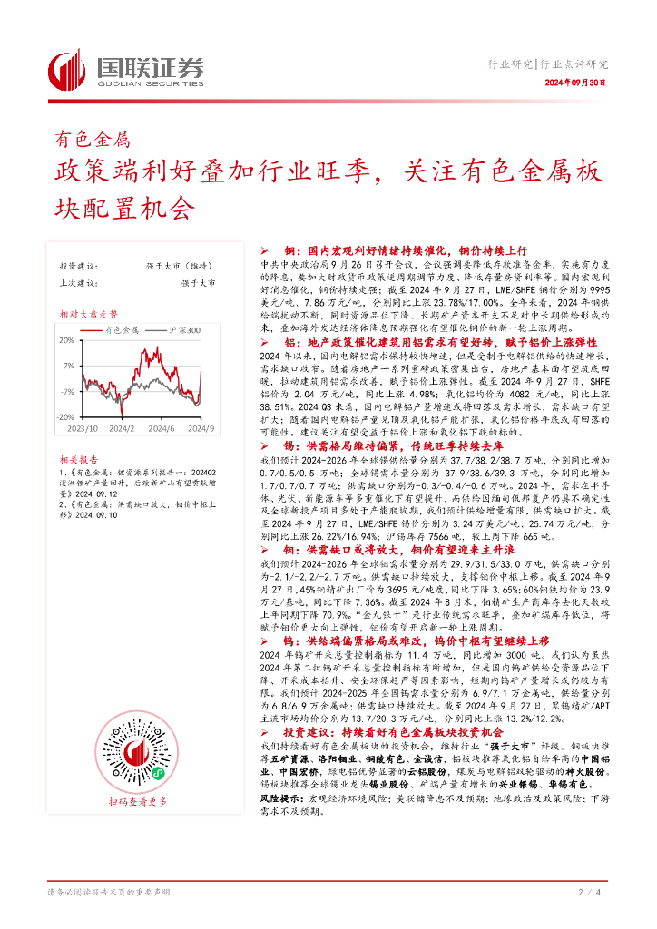 国联证券:有色金属:政策端利好叠加行业旺季,关注有色金属板块配置机会.pdf