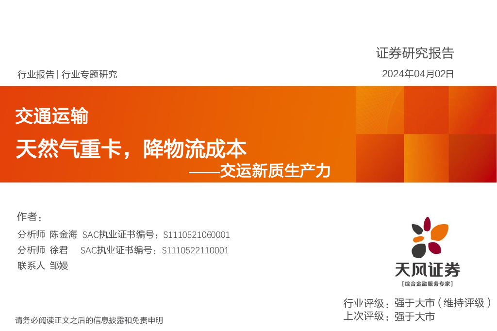 天风证券:交通运输行业专题研究:交运新质生产力-天然气重卡,降物流成本.pdf
