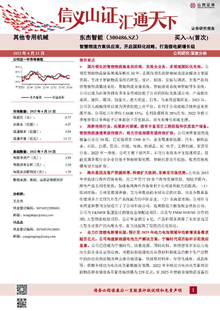 山西证券:东杰智能(300486)-智慧物流方案供应商,开启国际化战略,打造锂电新增长级.pdf