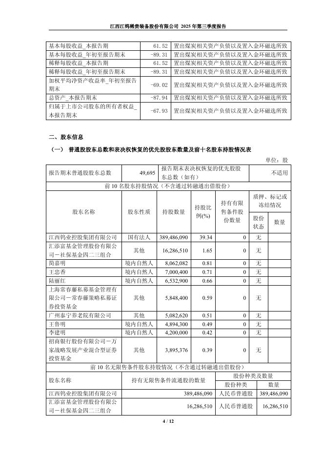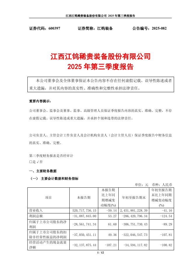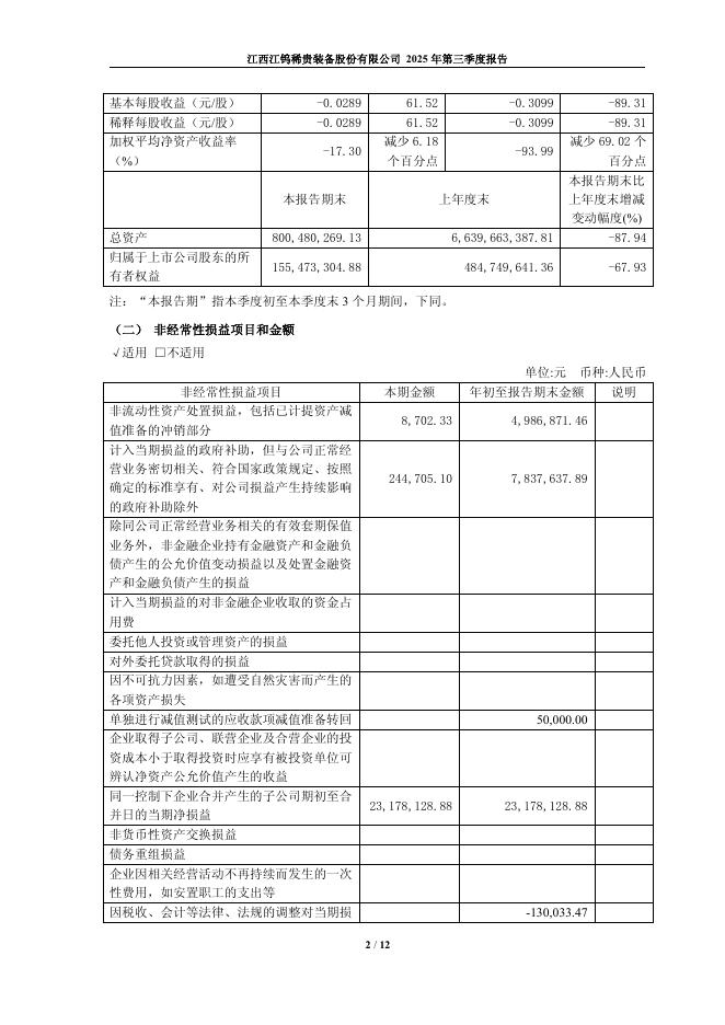 600397-江钨装备:江西江钨稀贵装备股份有限公司2025年第三季度报告(更新版).pdf
