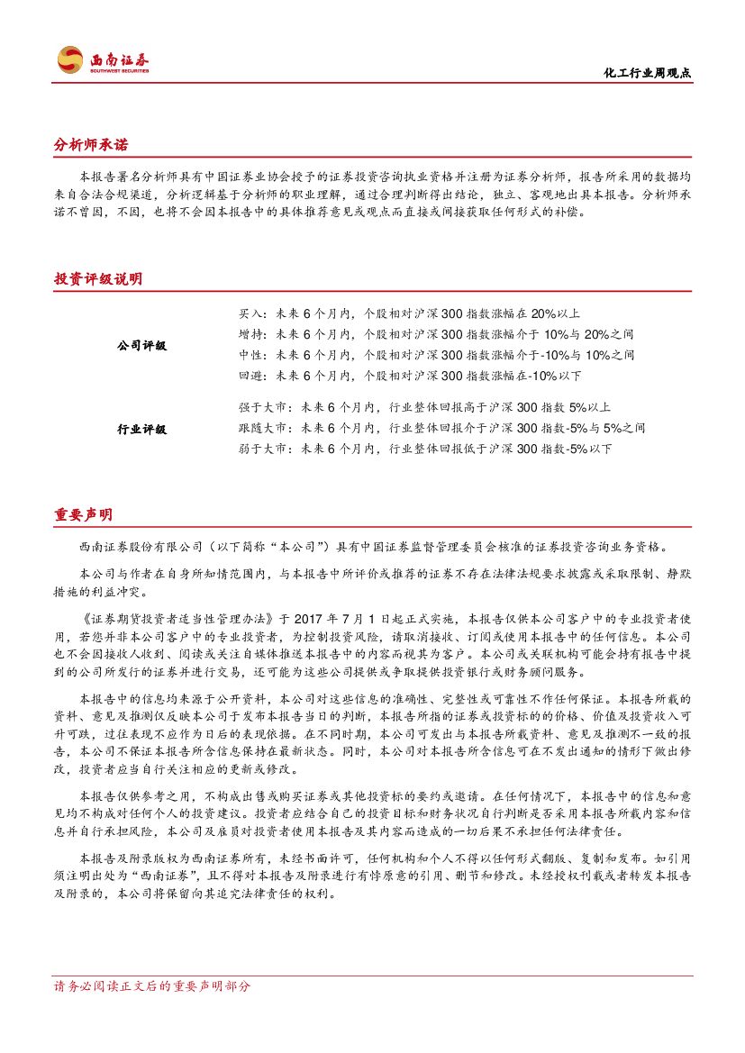 西南证券:化工行业周观点:萤石、丙烯价格持续上涨,发泡剂F141b价格有望趋势上涨.pdf