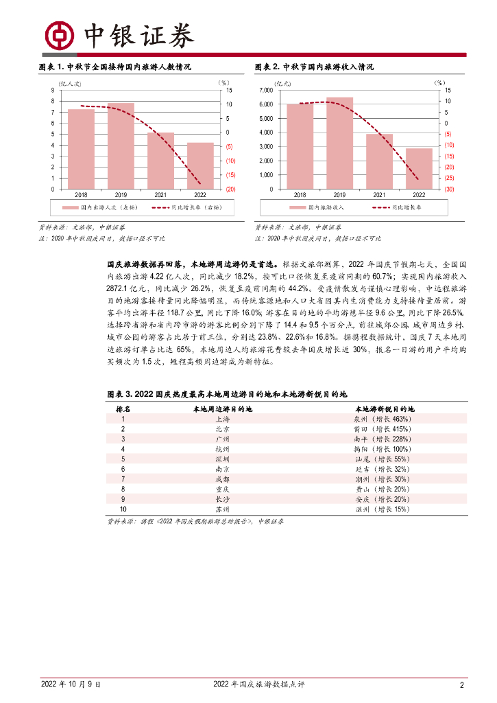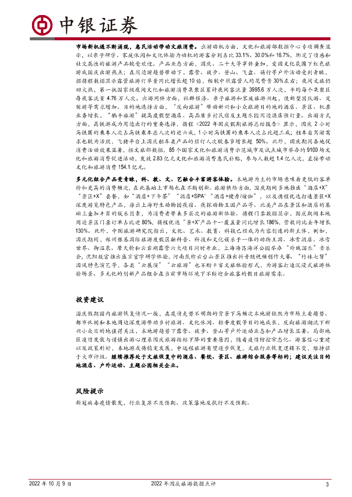 中银证券:2022年国庆旅游数据点评:旅游人次收入同比继续下降,本地周边游主导下小众多元化旅游成游客新需求.pdf